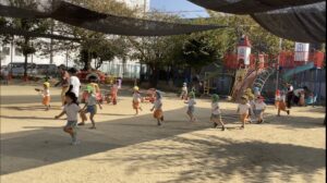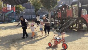 先生たちも、役割や連携を確認しながら訓練に臨みました。園の環境(避難用具の設置場所等)、役割分担、避難経路の見直しなどについても考え直す、よい機会となりました。日ごろからの備えを大切にし、いざという時に子どもたちをしっかり守れるよう、今後も職員全体で力を合わせて取り組んでいきます。