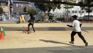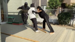 もしも...不審者が園庭に来たらどうするの?という想定で訓練をしました。