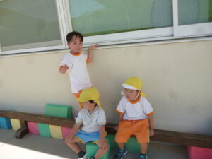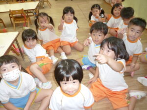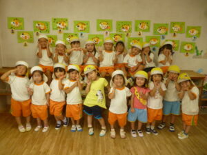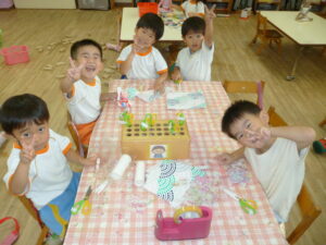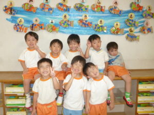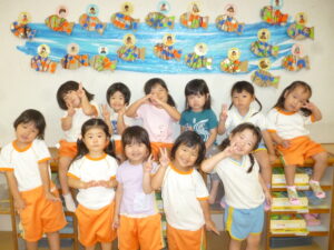 9月は魚の製作をしました。製作の前でハイチーズ!!