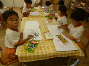 魚(ハリセンボン)の製作をしたからか、海の生き物を描く子が多かったです🐡