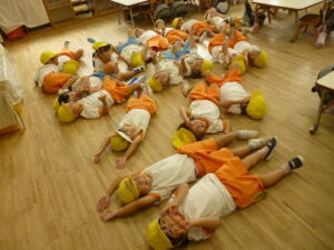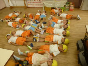 運動会練習の後や帰りの会で、寝転がる時間を設け、リラックス~🌟