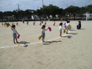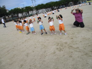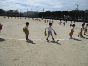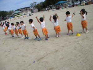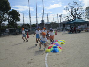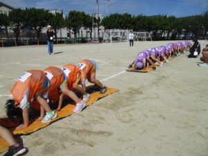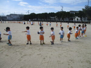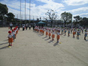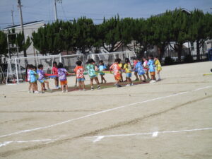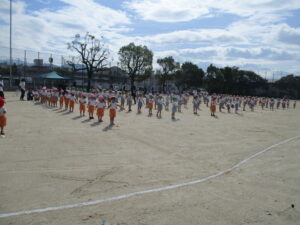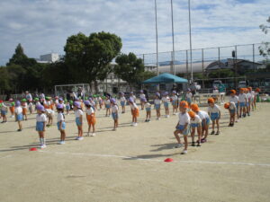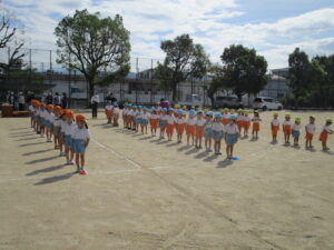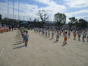 朝晩は少しずつ涼しくなり、秋の気配を感じられるようになりました。運動会に向けて毎日少しずつ練習に取り組んでいます。今日は久枝小学校のグラウンドで練習をしました。