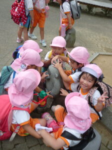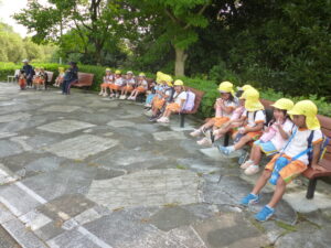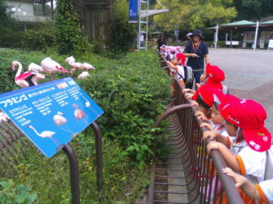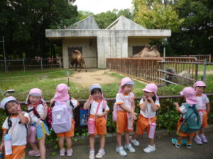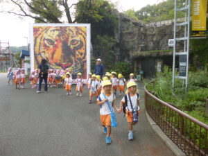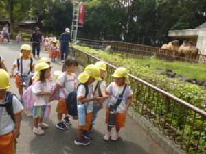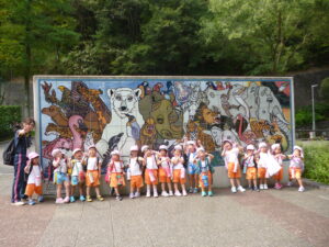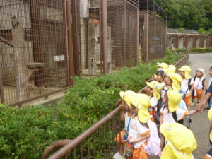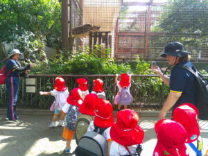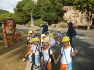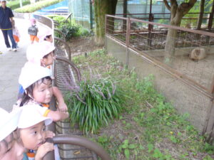 年少さんは、動物園内全てを周れましたよ☆彡頑張って歩きました!今日は動物たちがよく動いていて、子どもたちも真似をして大笑いしていました。オウムのおしゃべりも聞くことができて嬉しかったね。お弁当の後は、どんぐり拾いもしましたよ~。