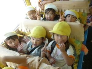今日は遠足日和でした☀行きのバスではくるりんを見つけて「パパとママと乗ったよ」など会話が弾み💗みのり商会の花の看板を見て「大きい花だね」と、景色も楽しみました。