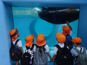 アシカやペンギンがみんなの前を通るたび、「速い!」「気持ちよさそう!」とつぶやきながら見ました。