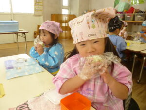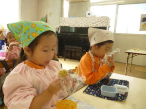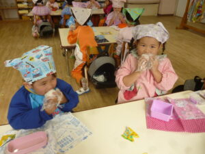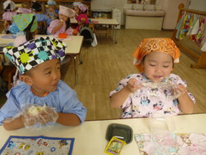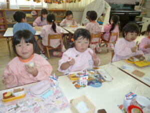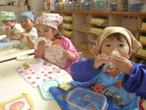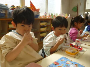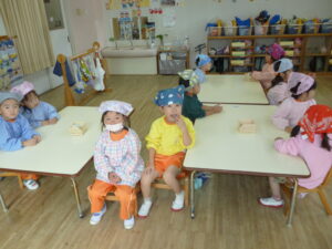 登園してから「いっぱい食べる!!」と、ワクワクの子どもたちでした。