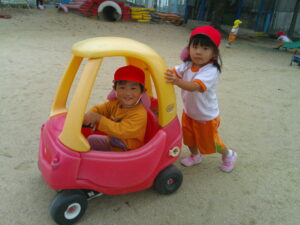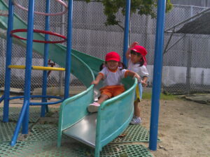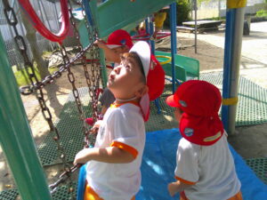 園庭でも元気いっぱい、伸び伸びと遊んでいるちゅうりっぷ組さん!