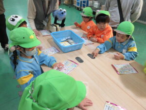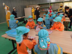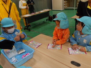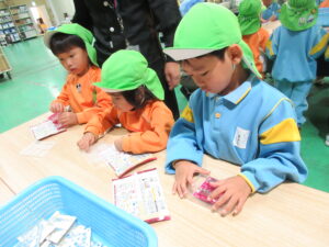 子どもたちも実際に袋詰めを体験しました。資材が揃っているか、穴が開いていないかを確認しながら袋詰めをしていきました。