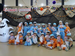 ハロウィンシーズンということで、ハートさんの方達も仮装をしてくれていました😊「青いフワフワの帽子のキャラクターはなんでしょう」と言うクイズに元気よく、「クッキーモンスター!」と答えた子ども達🤣正解は「スンスン」でした😊