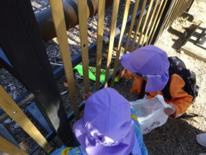 柵の向こうのどんぐりが欲しくて枝を使ってとっている子もいました。