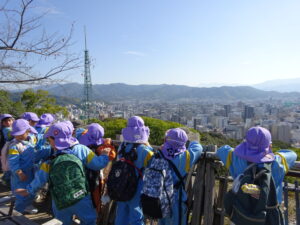 頂上では松山の景色を眺めたり、どんぐり拾いを楽しみました♬
