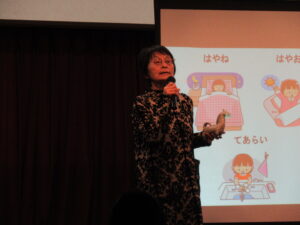 園長先生と「早寝・早起き・朝ごはん・手洗いうがい」の4つの約束をしました。