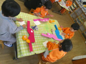 節分に向けて、鬼のお面の製作や豆まきの練習をしています👹