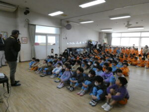特に年長組さんの子どもたちは真剣な表情で聞いていました✨4月からの小学校への通学もイメージしていたのかな😉