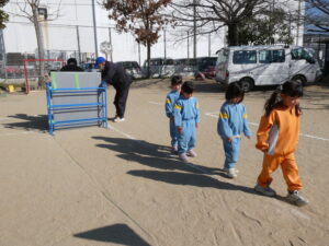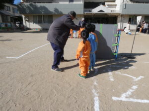 お話を聞いた後は、園庭を歩いて「安全な歩き方」を体験しました。