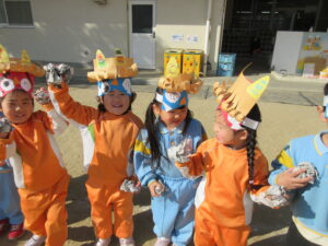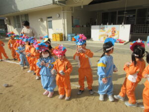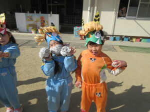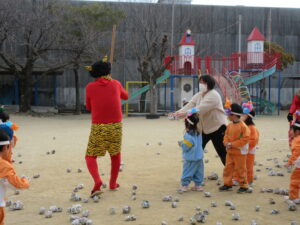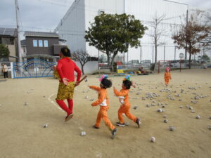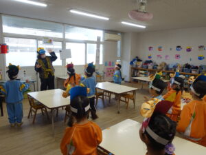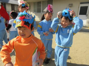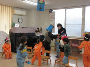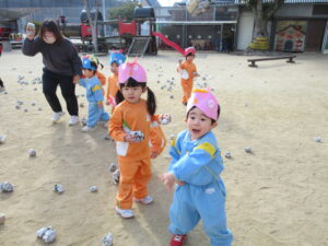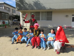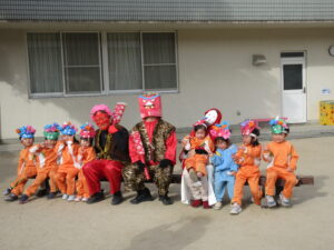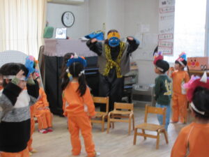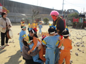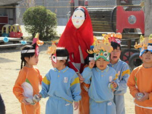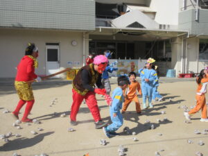 今日は幼稚園で節分の豆まきを行いました。