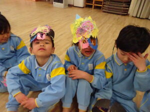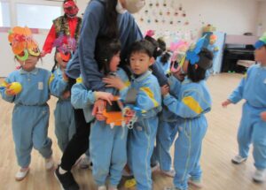 今日は、ばら組とふじ組の節分の日お休みしていた友だちで豆まきをしました👹