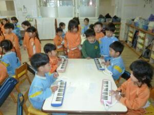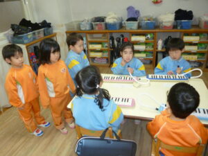 🌟年中組で、鍵盤奏を聴かせてもらいました。興味津々ですよ。次年度に向けて音階を学び中です♬