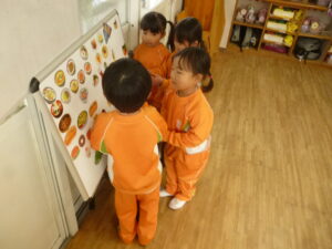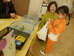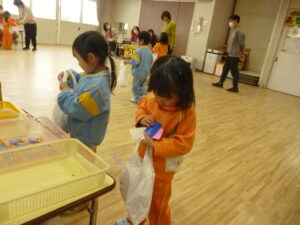 🌟クラスでもお店屋さんごっこをして、好きなお面やメダルを買い物しました。「これください」上手に言えるようになりました。