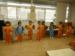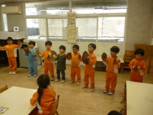 シンバル奏♬3月の誕生会に向けて頑張って練習中😄