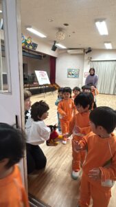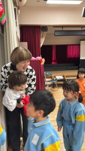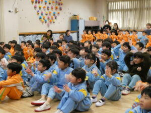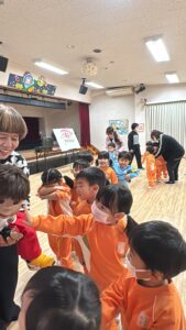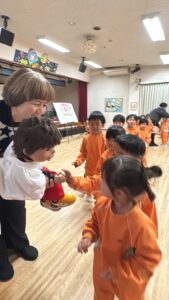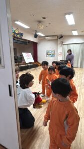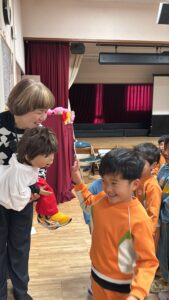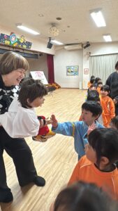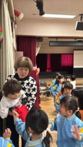 ホールに入るや否や「あっ えっちゃん!」「ぐりちゃんは?」と子どもたちは興奮状態😝
