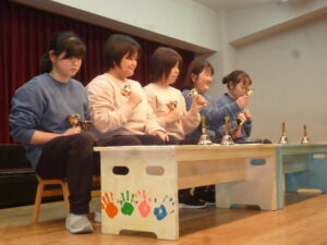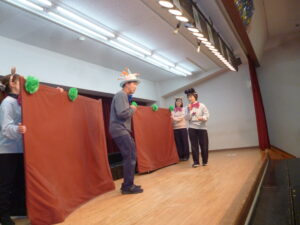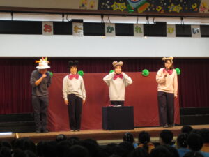 先生達の手品や、ハンドベル演奏、スペシャルゲストの、きむらけんさん(笑)のクイズで盛り上がりました。