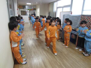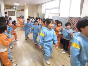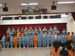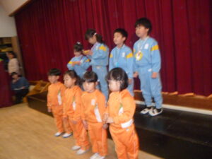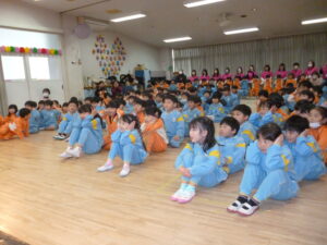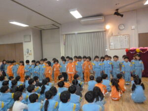 年中組さんは、🎵1歩・2歩・さんぽ🎵の歌、年少組と未満さんは🎵夢を叶えてどらえもん🎵の歌をプレゼントしました。