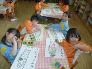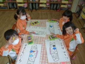 〈たんぽぽ組〉こいのぼりのぬり絵をしました🎏