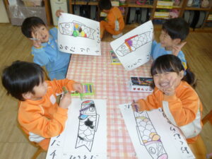 こいのぼりの絵も集中して取り組めました。