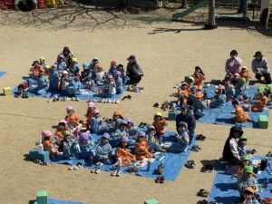 仲の良い友達と「一緒に座ろう🎵」と約束している子や、兄弟姉妹を探し手を振って駆け寄っている子など、いろんな姿がありました😊