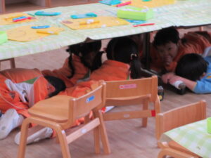 本日、地震を想定した「シェイクアウト訓練」を行いました。 突然の合図に驚いた様子も見られましたが、「まず低く」「あたまを守る」「動かない」という大切な約束を日頃の練習を思い出しながら、落ち着いて行動 ...