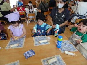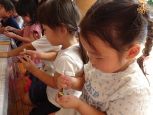 先生の話をよく聞いて、作り方をじっと見つめる子どもたち