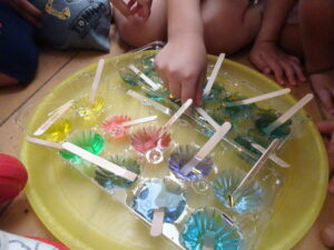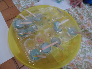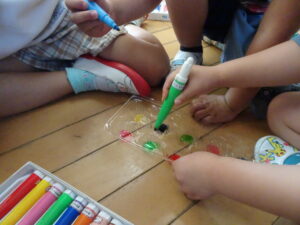 紙に色を付けたり、溶けていく様子を観察したり