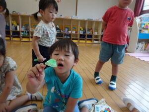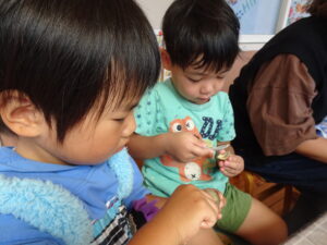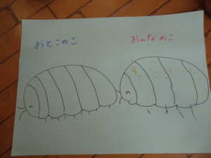 お集まりの時間に「女の子のダンゴムシは黄色い模様があるんよ~」と教えてくれました!