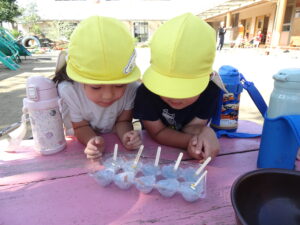 水を入れて凍らしてみることに、、、